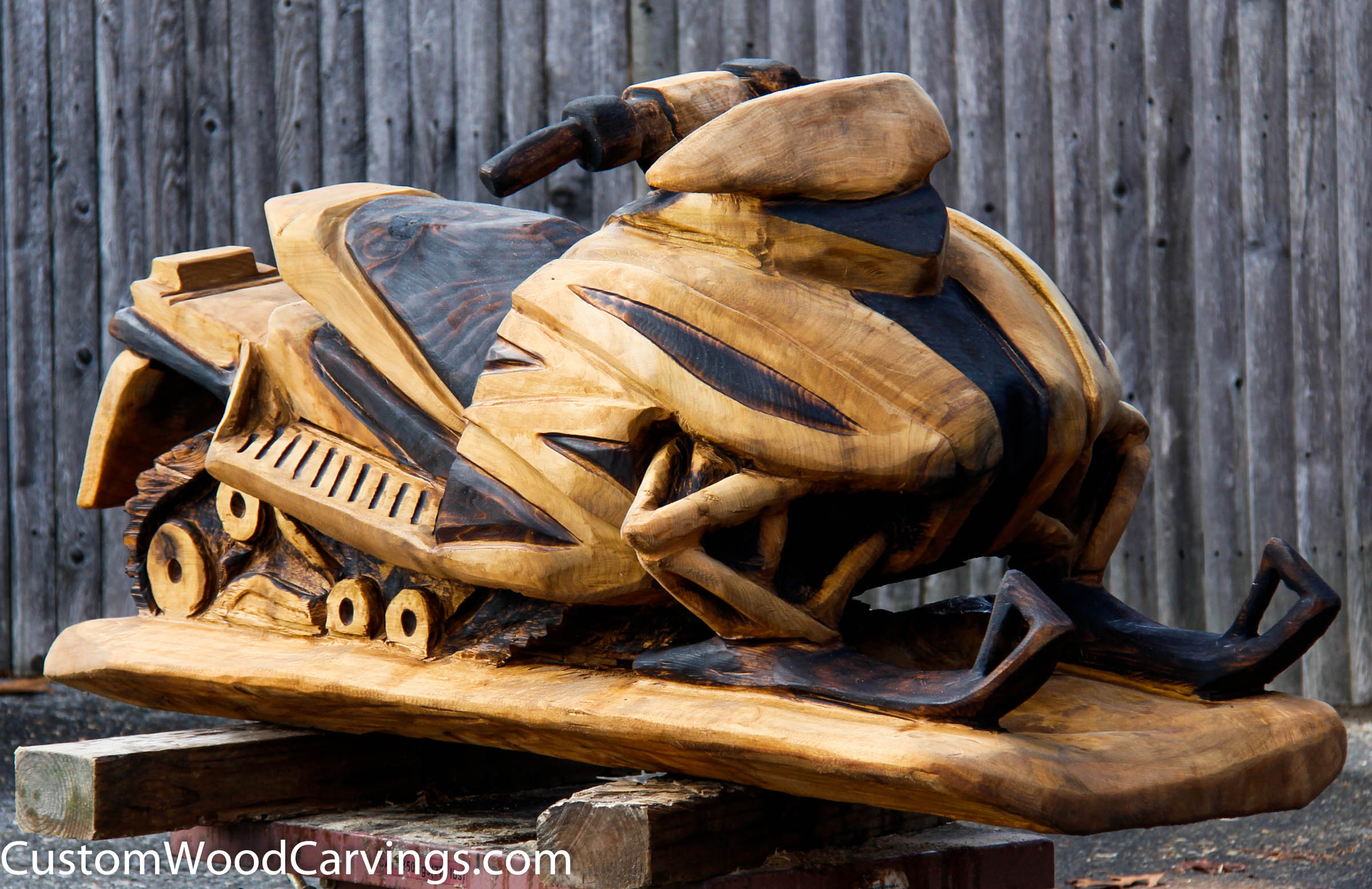 This customer wanted a carving of a snowmobile. This required my biggest log in storage. I ended up using a 5.5 ft. long poplar log. We agreed on this image as a basic design.