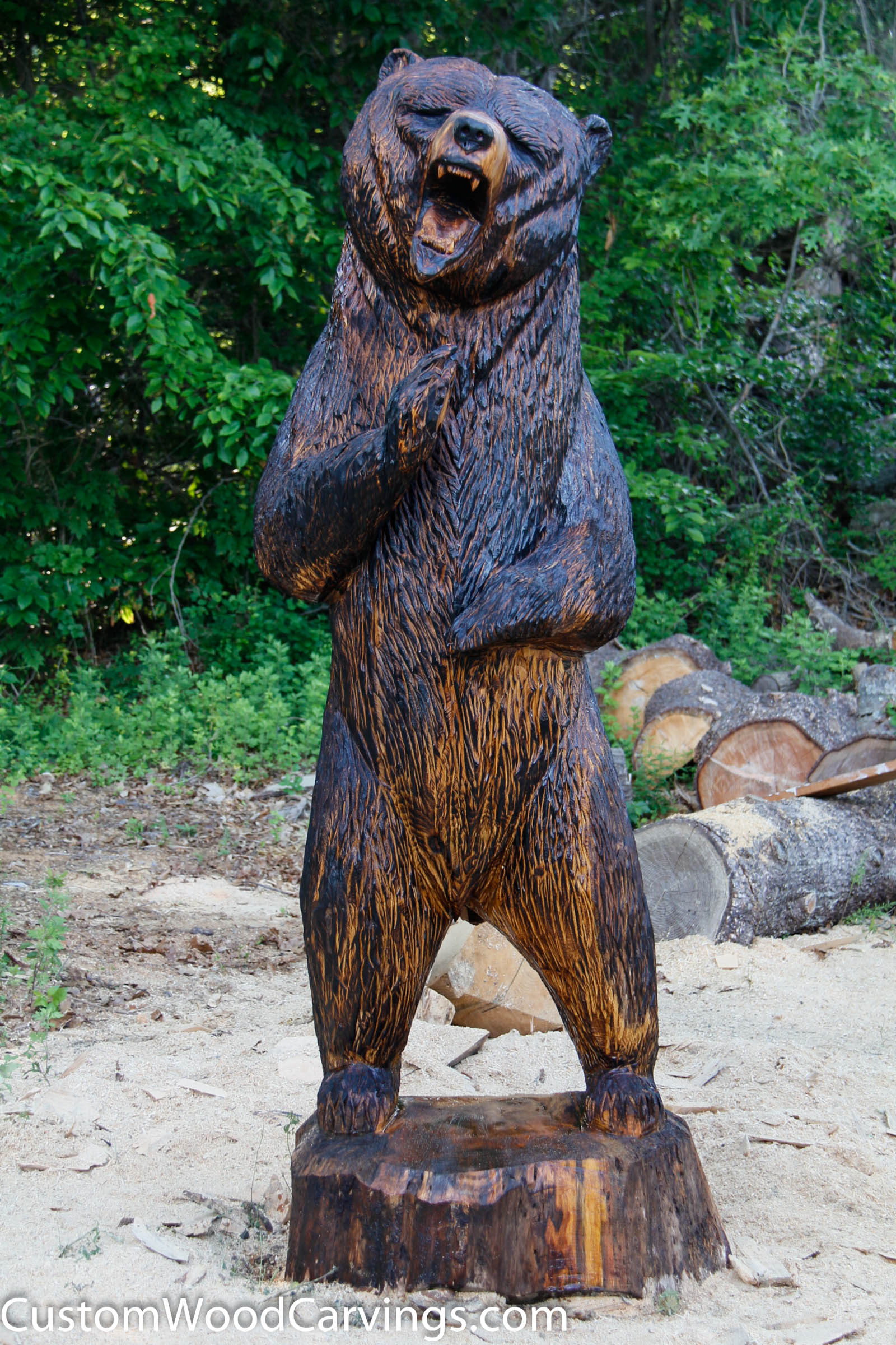 One of my tree service friends from Old Lyme, CT runs a business called “shoreline tree expert”. He commissioned an 8 ft. grizzly for his home. He provided the log of course!