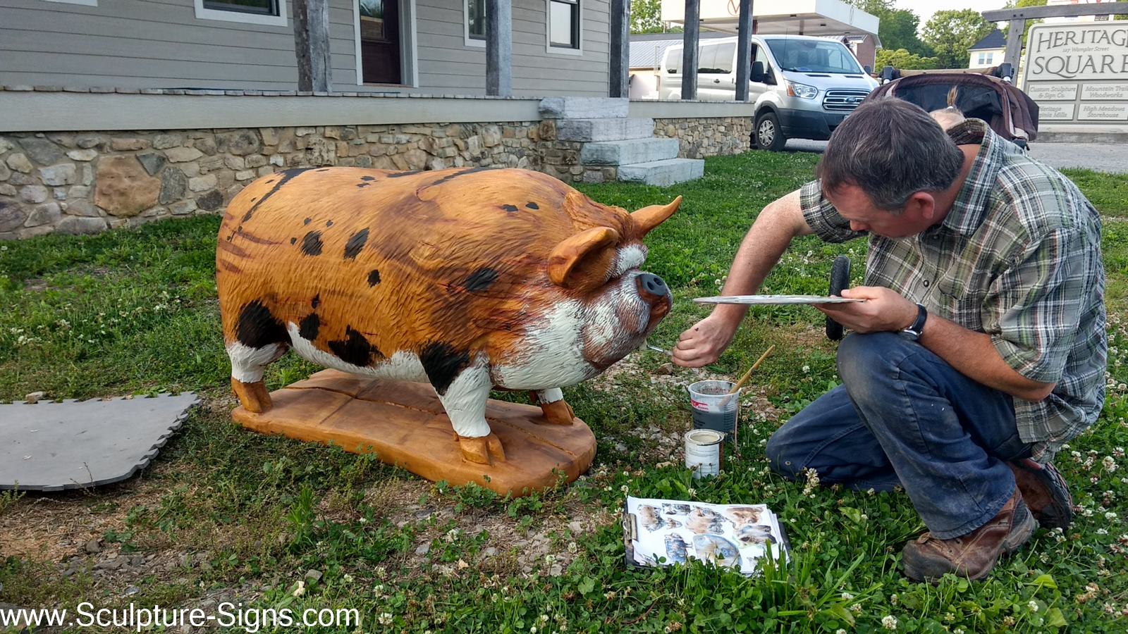 Our client contacted us about creating a life size Kunekune pig with a goat playfully perched on his back. It was to be a gift for his father at their Long Island farm. We finalized a design and I procured a sycamore log to begin carving.