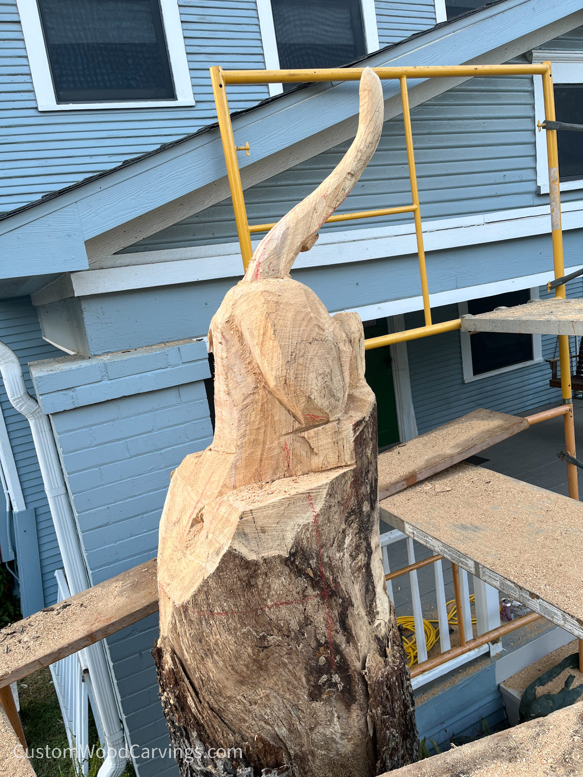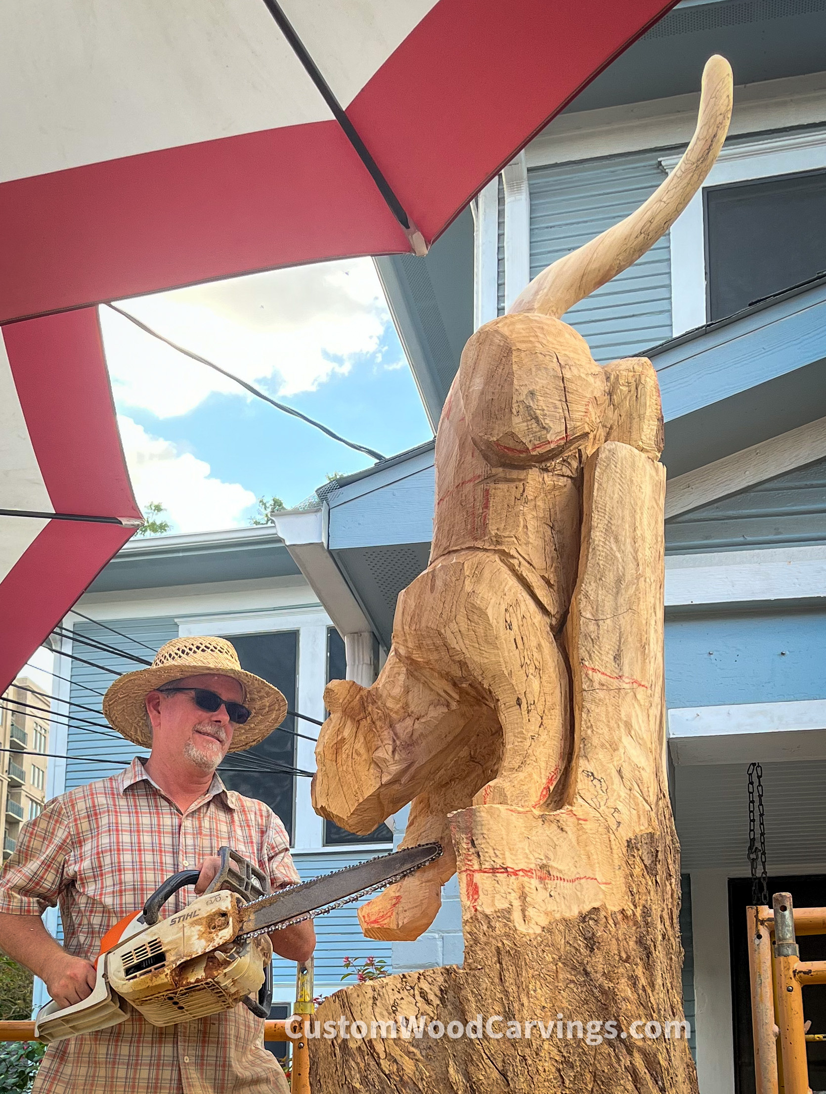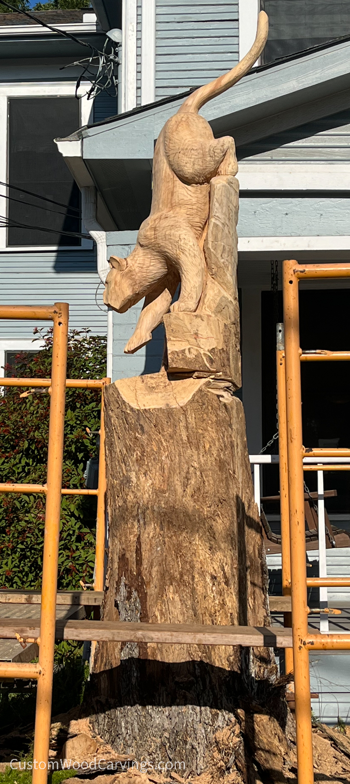 A customer in Houston, Texas reached out to me about creating a life-size cougar using a stump in his front yard. We settled on a design of the cougar descending down some rocks, as it is the mascot for the University of Houston. We also included the U of H logo on the base.