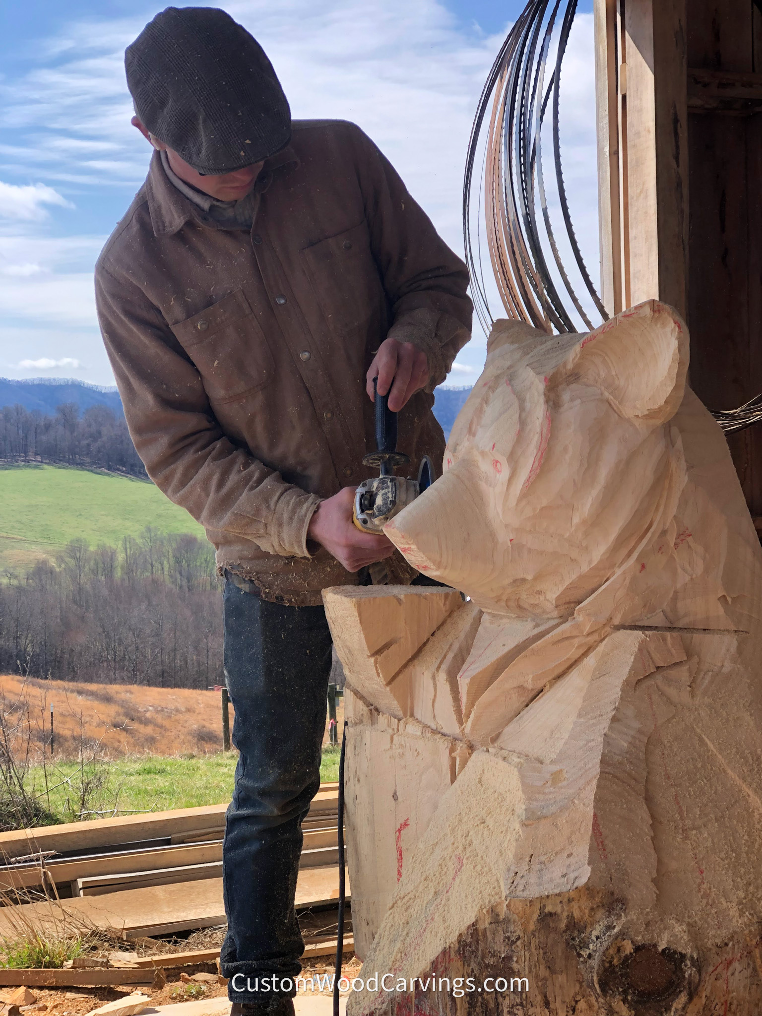 A customer in Waco, TX contacted me about getting a Baylor Bear carved for a special alcove in his new lake home. He wanted the bear to be waving, so after some back and forth about the design, we got started! My son, Miciah, carved the beginning of this bear as I was unable because of a shoulder injury. I supervised, and he did a great job!
