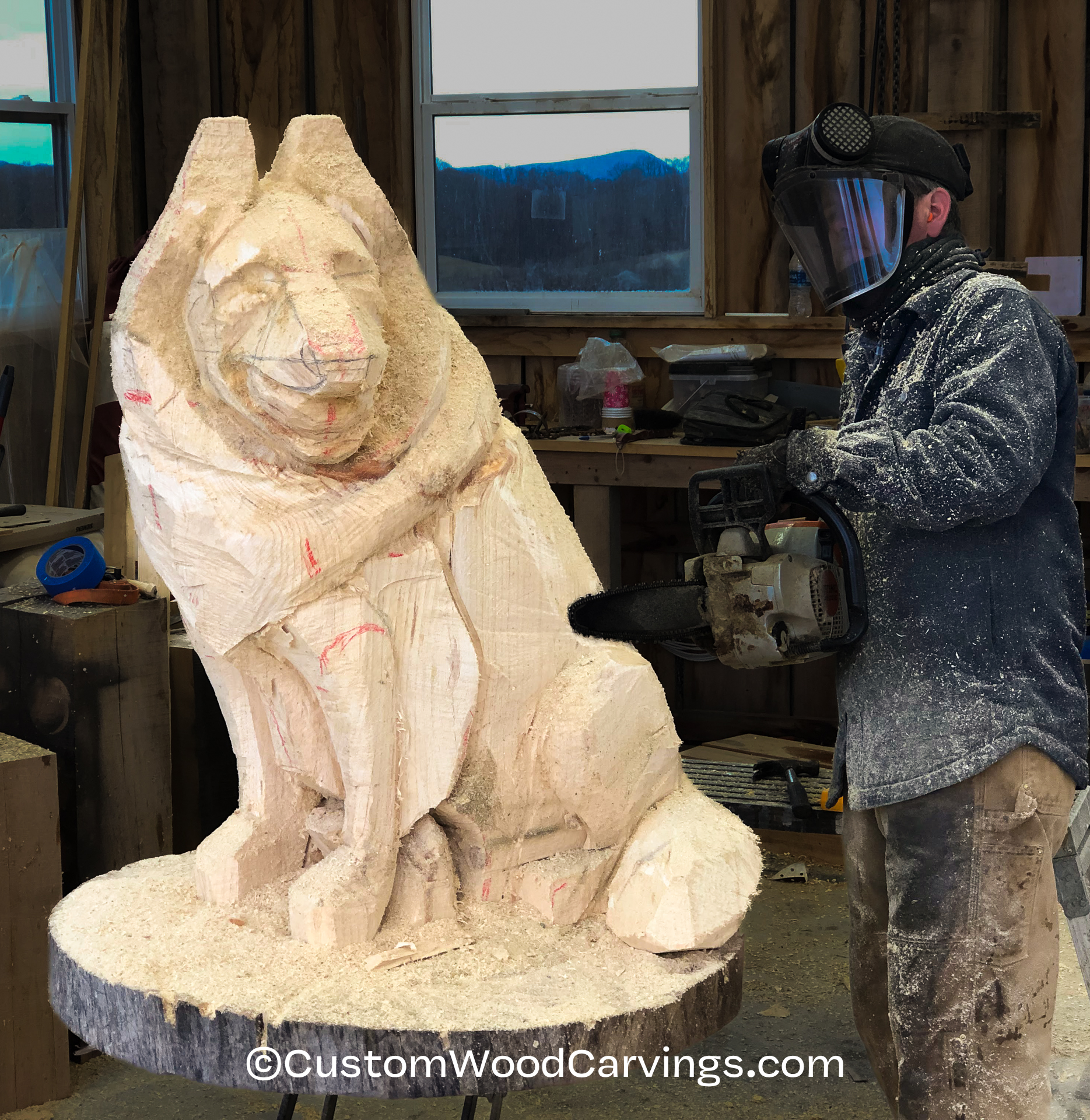 This customer contacted me about creating a life size carving of his Belgian Tervuren dog. I got my log and got to work!
